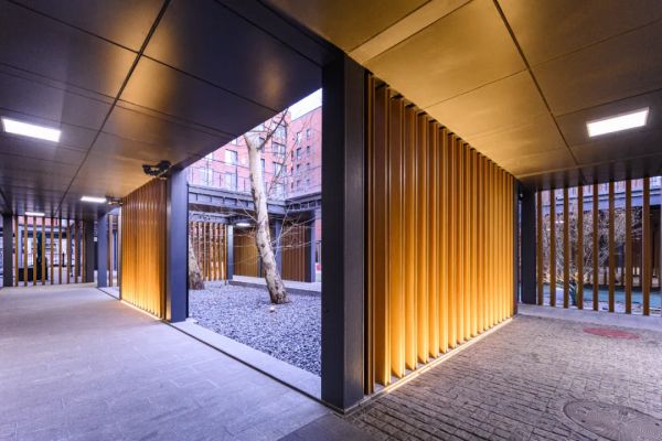 作为冬奥会官方接待饭店之一的智选假日酒店,采用“仓阁”的设计理念。户外过道不设繁杂的雕饰,整体自然工整,垂直光感线条点缀其中,金属钢架在LED投光灯映射下凸显极简的设计感,既不突兀,又别具一格。