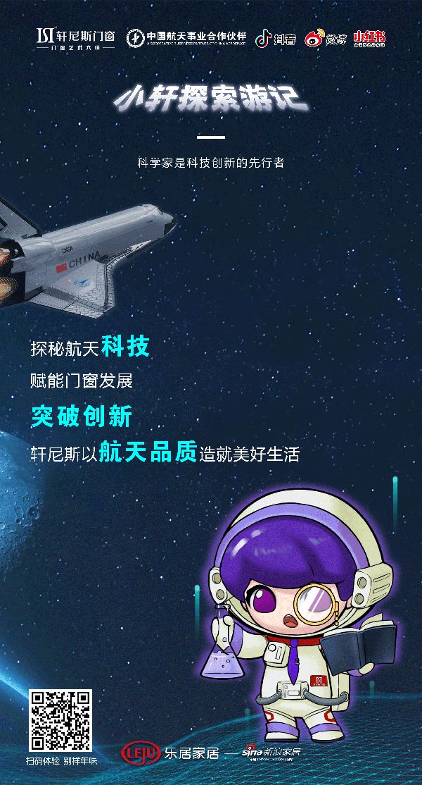 新浪门窗频道讯 2021年轩尼斯门窗与中国航天基金会正式达成合作伙伴关系,轩尼斯门窗以匠心品质致敬中国航天精神,近日,特推出全新宇航员形象--小轩。为更好地让广大消费者熟知轩尼斯门窗品牌,增强品牌与消费者的互动关系,促进终端的销售与招商工作,现对该形象进行包装推广。