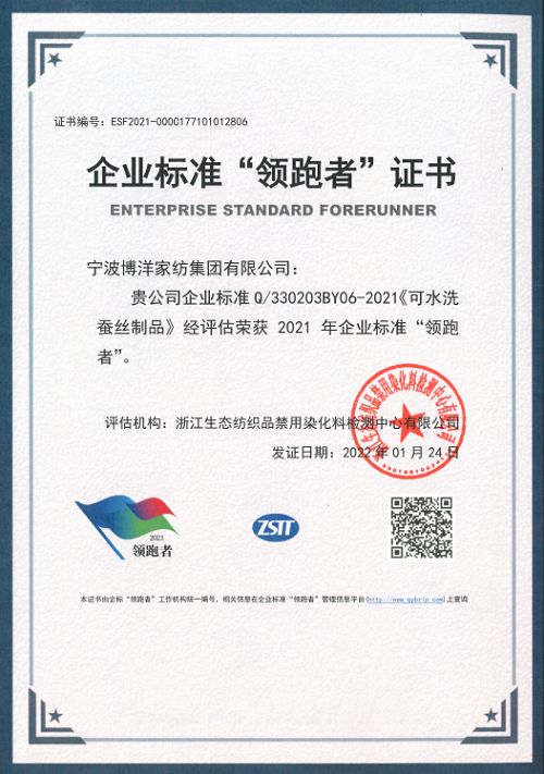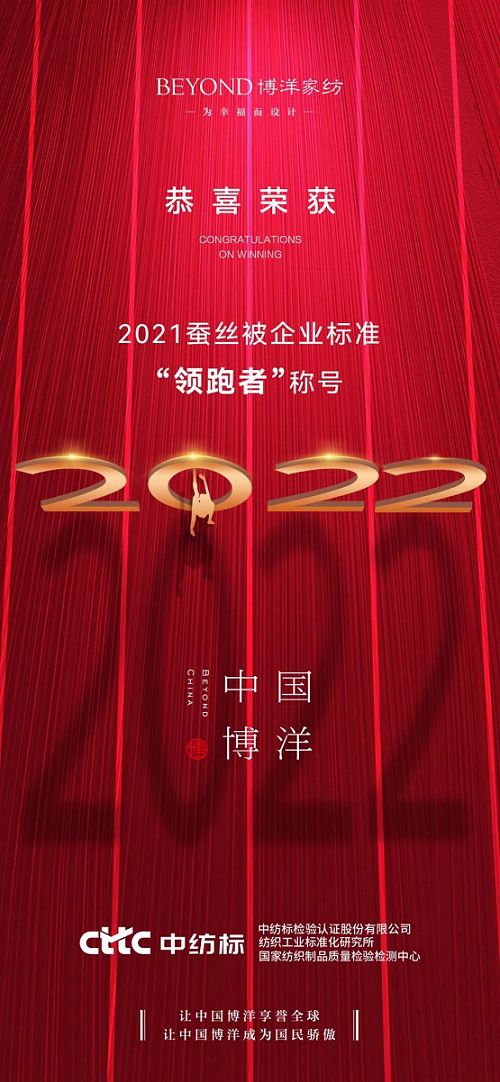 博洋家纺荣获“2021蚕丝被企业标准‘领跑者’”称号