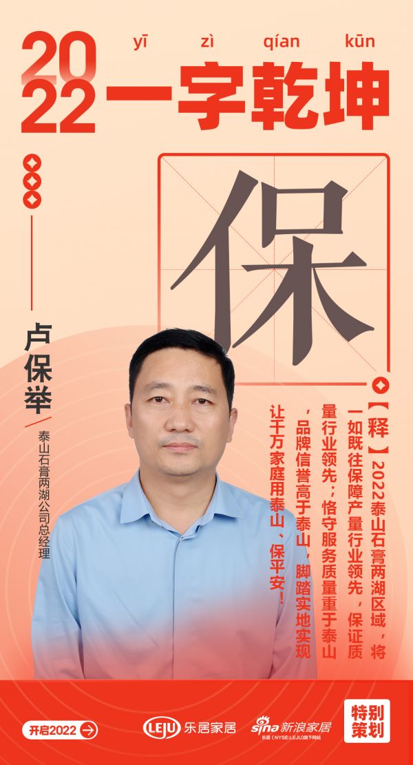 “乐业安居”是中国人最为共情之处,湖北家居人深谙汉字对于国人、对于企业的非凡意义,武汉新浪家居战略合作伙伴、家居行业优秀代表泰山石膏两湖公司总经理卢保举,以「保」字打开新年仪式感。