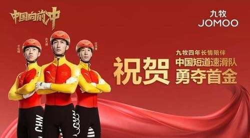 一直以来九牧作为赞助商,已经陪伴中国短道速滑队走过了四年时间,也见证了中国短道速滑队获得了冬奥首金。同时,九牧提出的“中国向前冲”口号也响遍全球。