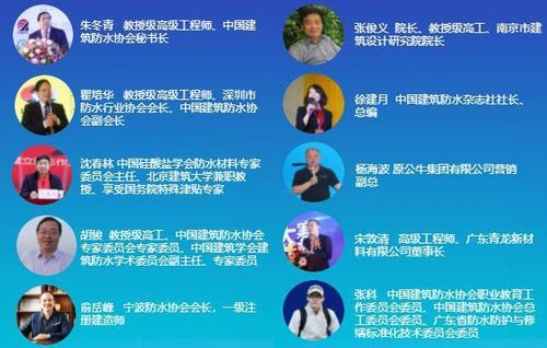 行业大咖朱冬青、瞿培华、沈春林、胡骏、俞岳峰、张俊义、宋敦清、张科等专家学者,以及在防水补漏行业取得巨大成就的老板,将为大家进行宣讲,为大家分享行业大势与国家补漏标准的实施,以及个人经验总结,财富密码,有助你快速融入行业精英朋友圈,掌握当前的最新防水补漏资讯和行业走势,把握投资方向,降低投资风险,将事业更快更稳走向新的辉煌。