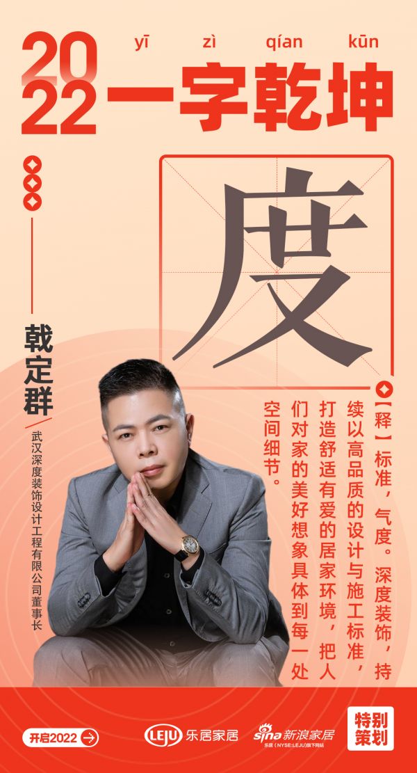 “乐业安居”是中国人最为共情之处,湖北家居人深谙汉字对于国人、对于企业的非凡意义,武汉新浪家居战略合作伙伴、家居行业优秀代表:深度装饰董事长戟定群,以「度」字打开新年仪式感。