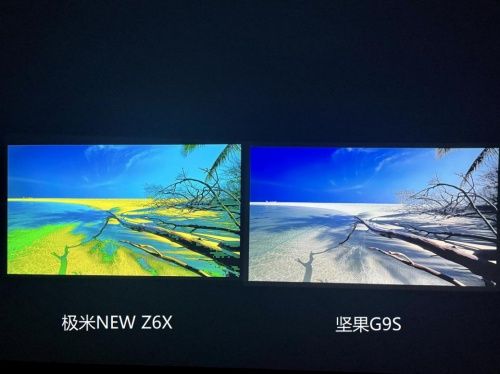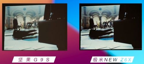 决定一款投影仪性能的主要因素就是芯片,坚果G9S采用的是MT9669芯片,CPU采用了4核A73架构,支持HDR10和HDR10+以及HLG的解码,在画质、散热、反应速度等表现力上几乎媲美5000元高端投影仪;而极米New Z6X采用的芯片则是Mstar848,作为一款“老芯片”,它在性能表现上与MT9669还是存在不小的差距,就直观的对比就在两台投影仪的画质上。