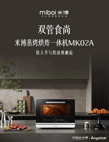 2022年2月14日,方太旗下全新轻厨生活方式品牌米博(miboi)携重磅新品米博蒸烤烘炸一体机MK02A小魔盒震撼亮相,同时开启京东众筹活动,并联合安琪酵母为新老用户奉送福利。目前,蒸烤家电市场正逐渐向个性化、时尚化、智能化升级,并形成蒸、烤、烘、炸等多功能一体化的行业新格局。为践行米博在集成化、智能化、健康化、轻厨化等新兴厨电领域的全新探索与尝试,米博蒸烤烘炸一体机MK02A小魔盒以其智能颜值、简单操作、年轻化格局等产品特性为消费者开创了全新的厨房生活方式,在当前激烈的蒸烤赛道市场竞争中独树一帜!