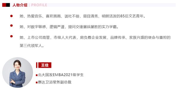 2022年开年,“廿壹行“第二期邀请到惠达卫浴常务副总裁、北京大学国家发展研究院EMBA2021级王佳,畅谈惠达的家族传承、企业发展、人才培养和社会责任,同时就学习与发展展开探讨。
