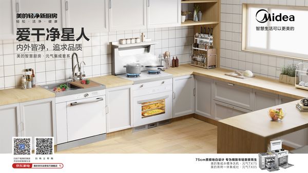 在品牌营销方面,美的也早有动作。2021年,美的集成灶提出了“厨房重构,一套就够”的场景化发展口号,高调推出“集成灶+集成水槽”的套系化解决方案。同年参与了京东组织的针对渠道下沉的“星火计划”展会,集成灶成为展台上的重点推广品类。