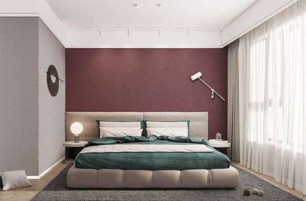 纯色与饱和度都稍低一些的红色,看起来尤为有质感和时尚感,而且在家居中搭配起来也是出奇的惊艳。带着细腻纹理的墙布,视觉张力极强,又兼具低调沉稳。