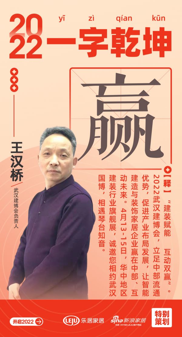 “乐业安居”是中国人最为共情之处,湖北家居人深谙汉字对于国人、对于企业的非凡意义,武汉新浪家居战略合作伙伴、家居行业优秀代表:武汉建博会负责人王汉桥,以「赢」字打开新年仪式感。
