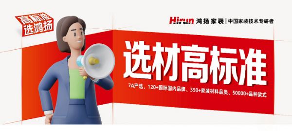 如今,深耕行业26载的鸿扬,再次对后疫情时代的市场需求做出反应,提出“高标准,选鸿扬”的品牌主张,并在继续贯彻“无醛”选材的基础上,建立了一套独家的7A严选材料的体系,推动企业实现产品有标准、生产有规范,促进产品质量提升。据悉,鸿扬已从全球严选50+品类主材产品,甄选120+品牌,与国际、国内一千多个一线材料品牌建立了合作关系,能提供包含8大类别、不同价位的50000+款材料商品,全面覆盖多层次的市场需求。