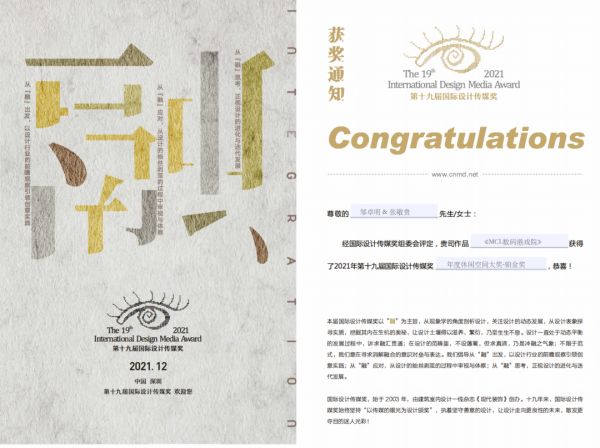 NEWS丨OFT设计荣获2021国际设计传媒奖铂金奖