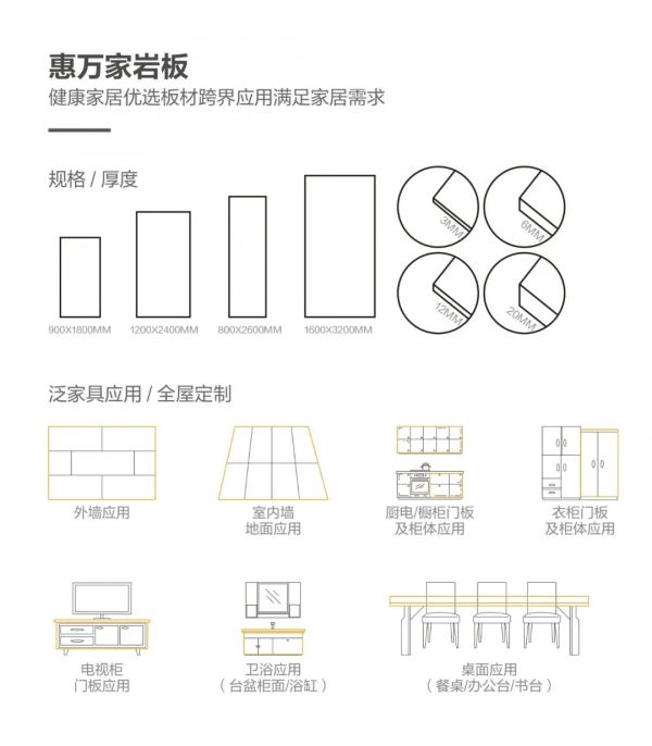 当新材料、新趋势出现,大家在选择时会有相应迟疑:材质是否够好、为什么不选择原有方案?而惠万家新开发的岩板系列,以其过硬的产品实力、多样化的尺寸选择和定制服务,让岩板定制成为焕新生活空间的种子选手。