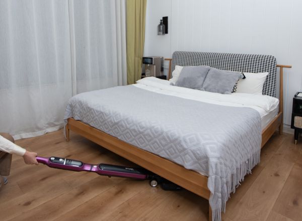 同时它还能实现180°平躺清洁,不管是家具底部的狭窄缝隙还是其他一些日常清洁中难以实现有效清理的区域,维纳斯都能从容应对。