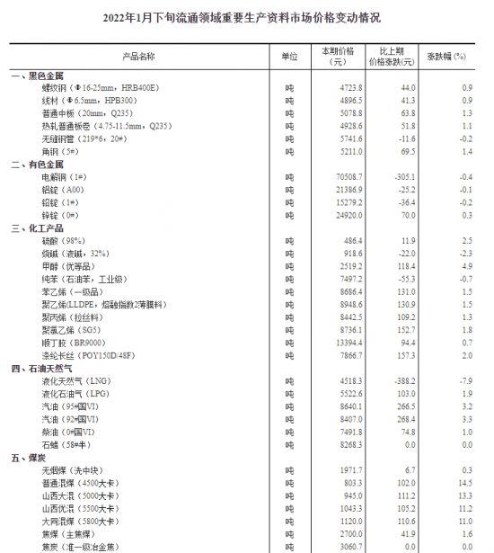 家电快讯|2022年1月下旬流通领域重要生产资料市场价格变动情况