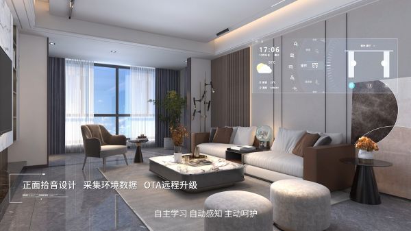 早起时,它以温柔的音乐及阳光唤醒熟睡中的你;出门时,无需繁琐的安防操作,从关门的那一刻起,家中的窗帘、灯光、电器等将关闭,全屋安防报警系统自动开启,全方位守护家庭安全。