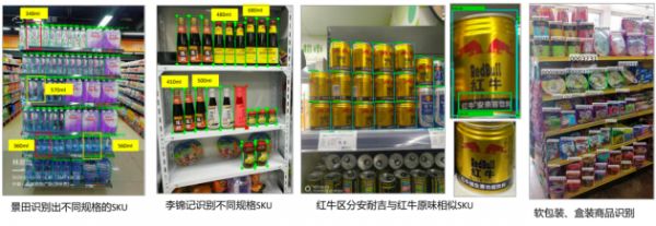 商品识别技术沉淀:通过持续的AI技术沉淀以及30个多合作客户案例积累,可精准识别相似商品、大小规格商品、同系列不同口味商品、特殊包装商品(含软包装、盒装、小包装、膜装等)等多样化的商品类型。