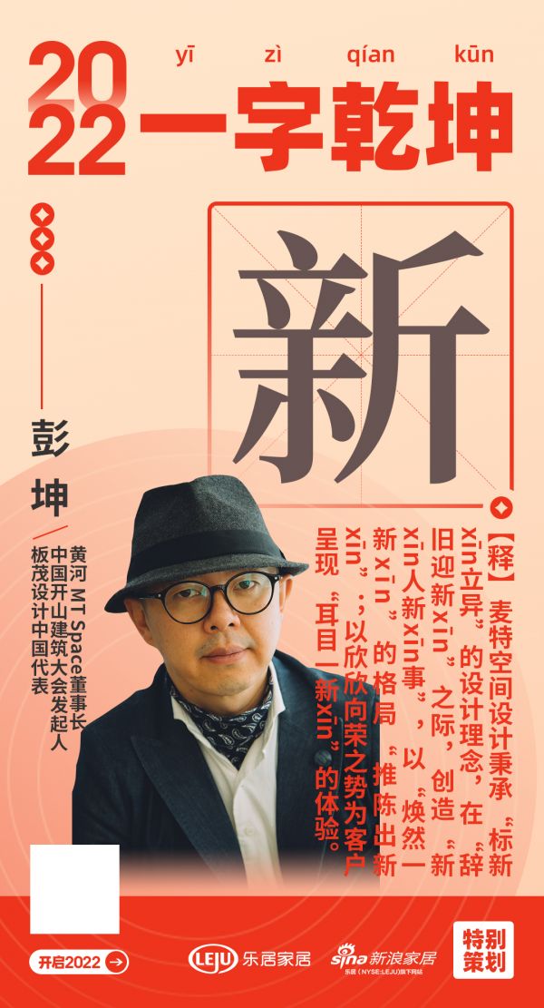 在“2022一字乾坤”活动中,MT Space董事长、中国开山建筑大会发起人、板茂设计中国代表黄河用「新」表达了2022年的规划和目标: