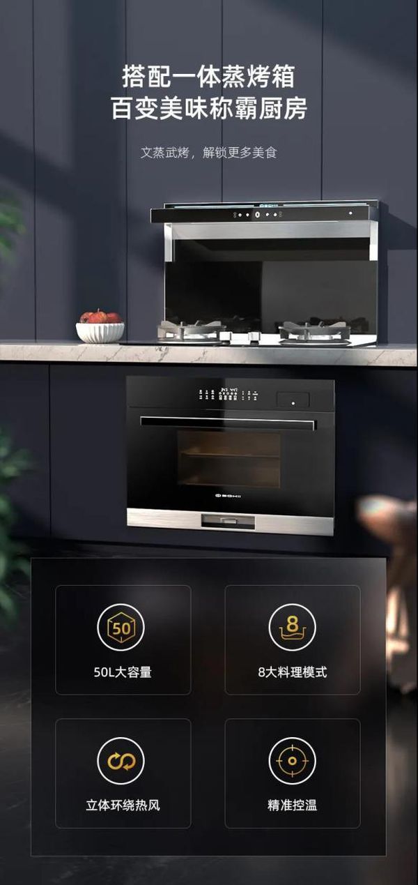 博净分体式集成灶十八般武艺,样样精通!做的多,赢得才漂亮!多项智慧集成:油烟机、燃气灶、蒸箱、烤箱、置物台、0.9米橱柜、消毒柜、酸奶机、保温箱、炸锅、蒸蛋器、面包机、炖锅、电饭煲,将烹饪空间浓缩于小小平米内,百变风味任你回味。