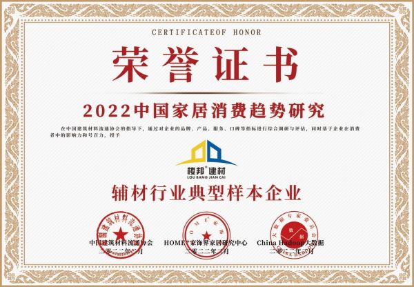 精诚的品质、优异的服务和开拓进取的精神,让楼邦建材在辅材行业竖起了标杆,并赢得广大消费者和业内人士的赞誉和好评,荣获“2022中国家居消费趋势研究辅材行业典型样本企业”和“2022消费趋势研究消费者喜欢的瓷砖背胶品牌”。作为一家优秀的民族建材行业化工品牌,期待楼邦继续恪守“解决天下人因掉砖掉石带来的痛苦”的企业使命,以客户服务为中心,提供更多绿色、环保、安全、高效的辅材产品。