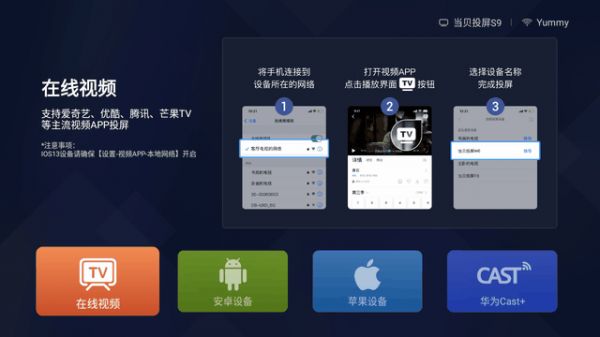 而且当贝投屏支持Air Play、DBcast、DLNA、华为cast+等多种投屏协议。所以不管是在线电视投屏,还是设备同步投屏,都能方便使用。