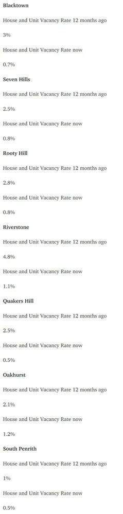 另外,他们的数据还显示,悉尼西区进入低房租top 20的城区,房屋空置率同比都大幅降低,包括以下城区:
