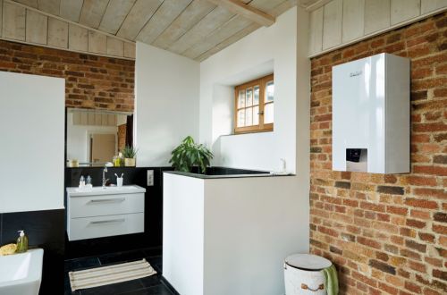 【图为威能ecoTEC exclusive冷凝式燃气壁挂炉,热效率高达“108%”】