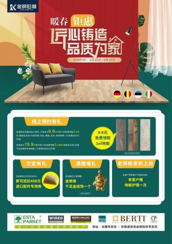 金钢铂林进口地板暖春钜惠活动来袭,超强力度!