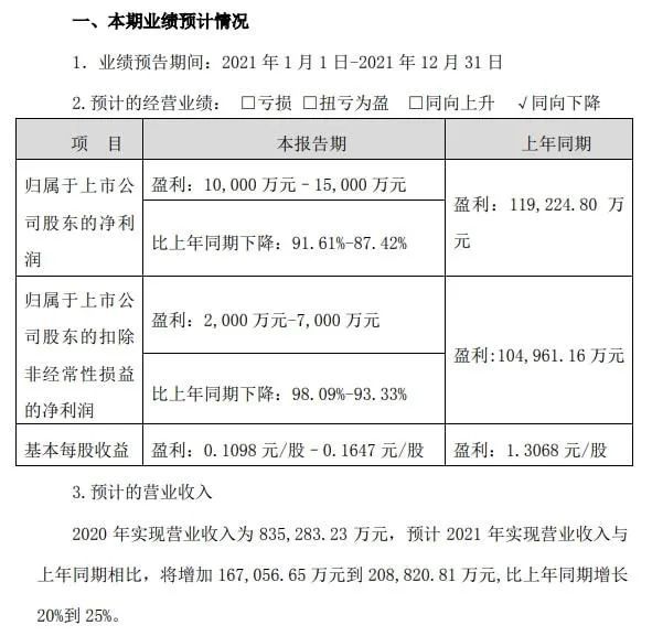 三棵树:在业绩预告中指出,2021年度公司营业收入预计较上年同期增长 40%左右。年报显示,三棵树营业收入分别是:2018年35.84亿元、2019年59.72亿元、2020年82亿元。按40%增长计算,2021年三棵树营业收入将达到114.8亿元,首次突破百亿大关,跻身为百亿级营收企业。