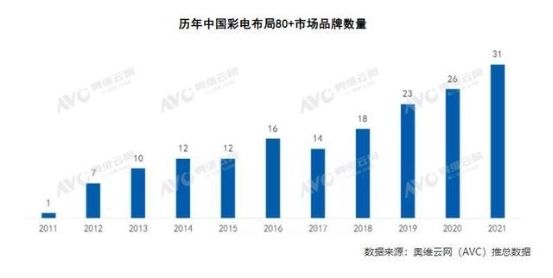 而“专业级影院”则意味着对大尺寸产品有更大的需求,从2021年的中国彩电市场可以看到,80英寸及以上的超大屏新品数量增长明显,占新品总数的10.3%,较去年增长了4.9个百分点。