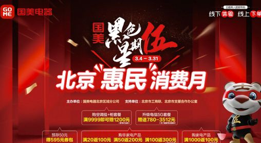 为贯彻落实国家“十四五”规划,同时积极响应国家号召,全力扩大内需消费,着力增强消费拉动力,增强市场主体活力,深耕京城35年的北京国美,在国美电器的统一部署下,于3月4日至3月31日在开展“北京惠民消费月”补贴活动。此次活动,正值国美电器黑色星期伍大促,双重活动叠加,优惠力度空前之大,厂家疯狂让利消费者,可谓是薅羊毛的最佳时机。