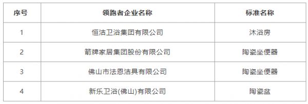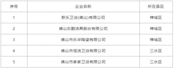 恒洁、箭牌、法恩莎、新乐卫浴等佛企入选