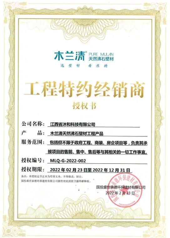 近日,木兰清总部再传捷报!江西省沐和科技有限公司与木兰清天然沸石壁材正式成为合作伙伴并成功签约。