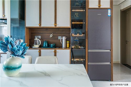 而卡萨帝抢先洞察到了家电融入家居的“新空间秩序”,从科技维度逐步拆除了两者之间的融合障碍。在底部散热、离心变轨铰链、创新发泡科技等原创技术的支持下,10cm的冰箱橱柜闪缝,到2017年由卡萨帝缩小至2cm,如今更是伴随着卡萨帝发布全球首个零距离自由嵌入式冰箱,实现了“0闪缝”。