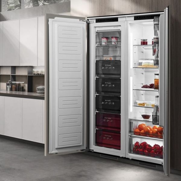 GRAM 8700-00X/10X嵌入式冰箱组合真正做到了“纤薄隐嵌”,打开门是储存新鲜食物的冰箱,关上门是融合的整体橱柜,实现整体家装幻想。