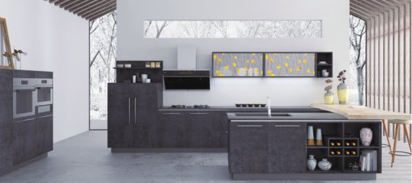 致力于让中国经典文化再现当代生活,柏厨还坚持用现代生活语言诠释传统东方之美,陆续推出了“御膳房”“盛世如意”“膳斋”“嘉园”等多款新中式厨房,用东方智慧创造更懂中国人的上乘产品。在造型上,柏厨家居以简练的线条展现主人家的古朴大方,极富韵律和节奏,就像乐曲的音韵,偶尔是柔中有刚的力量,偶尔是曲折含蓄的力量,偶尔是沉实的力量,偶尔又是婉转的力量。在色彩上,采用柔和的中性色彩,给人以自然脱俗的感觉,当面对快速变化的现代世界,它能够给身处其中的人们带来慰藉,鼓励其透过表象看到更多,从而扩展思维,通过挑战提升深入思考的能力,丰富视角,打开沟通交流的渠道。2017年,柏厨家居重磅推出新中式产品“醉花间”,通过工艺和技术的创新,在MFC板上复制出岩板质感,打造出立体石纹门板,产品一经上市销量便突破千万,再次证明了其对中国人审美情趣的敏锐洞察。