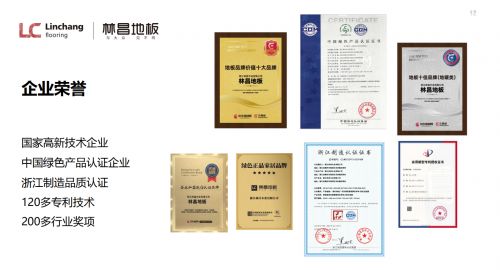 作为行业内的标杆企业,林昌先后获得了“健康地板引领企业”、“绿色正品家居品牌”等荣誉称号。2021年11月,林昌在经过相关部门的严格评审后,荣获实木复合地板与强化地板(浸渍纸层压木质地板)2大品类“中国绿色产品认证”。2022年1月,林昌更是顺利通过“浙江制造”认证,成为国内少数能够通过实木地板和实木复合地板产品,得到“浙江制造”认证的家居建材制造型企业,这是对林昌地板践行科学环保的绿色理念及成果的充分肯定。