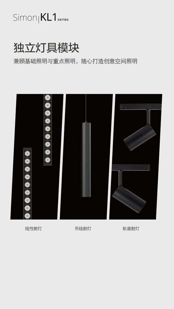 线性射灯/吊线射灯/轨道射灯,灯具模块配套丰富,灵活组合的特性可以在同一个空间自由搭配出不同的照明功能和效果。
