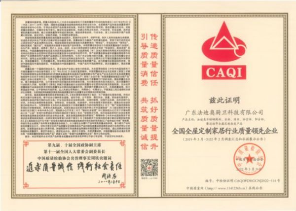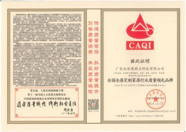 315国际消费者权益日到来之际,法迪奥荣获中国质量检验协会认定【全国质量检验稳定合格产品】【全国全屋定制家居行业质量领先企业】【全国全屋定制家居行业质量领先品牌】。