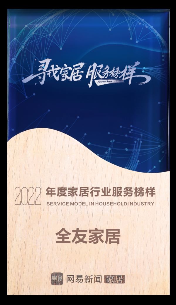 (全友荣获“2022年度家居行业服务榜样”奖)