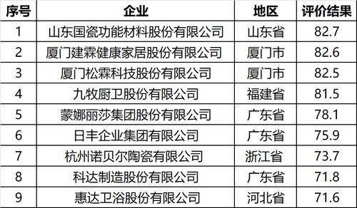 近日,国家发改委发布了国家企业技术中心2021年评价结果。本次国家企业技术中心评价,全国共有1700多家企业参与此次评价。其中,得分在90分及以上评为优秀企业,在65分至90分(不含90分)之间评为良好企业,60分至65分(不含65分)之间为合格企业,在60分以下等原因评为不合格企业。建筑卫生陶瓷行业共有惠达卫浴、九牧厨卫、松霖科技、日丰集团、建霖家居、科达制造、蒙娜丽莎集团、诺贝尔陶瓷、国瓷材料等9家企业技术中心被评为良好。