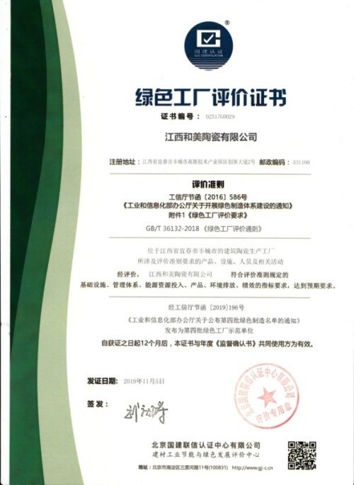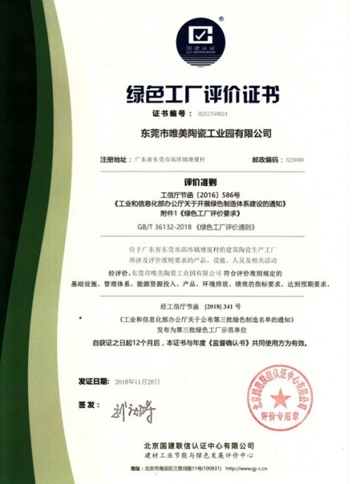 马可波罗控股是首批荣获“中国绿色产品认证”、首批入选国家工信部工业产品绿色设计示范企业名单的建陶企业,被授予g家级“绿色工厂”。这些荣誉既是对企业践行“绿色生产”理念的高度认可,更能为企业的高质量发展注入强劲动力。
