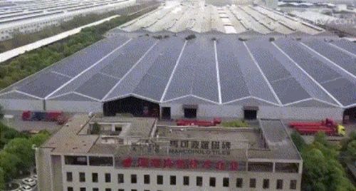 目前,马可波罗控股在全球建有五大生产基地,全面践行“机器换人”和绿色发展,实现窑炉100%使用天然气进行生产,其智能化生产、数字化管理及各项指标均达到国际先进水平。此外,马可波罗控股还积极建成光伏生产线。目前,马可波罗岩板绿色智能工厂铺设光伏面板面积达68万平方米,一年可发电1亿度。