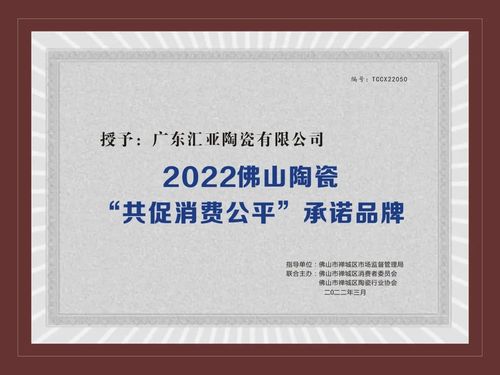 近日,由佛山市市场监督管理局主办的2022年佛山市绿色产品(陶瓷)认证政策宣贯会在佛山市南庄镇顺利召开,会上联合举行了2022佛山百家“共促消费公平”承诺品牌授牌仪式与2022复工复产培训及“佛山陶瓷企业安全生产达标及标兵企业”授牌仪式,佛山市市场监督管理局领导、佛山陶瓷企业有关中高层管理人员、产品认证管理专员、安全及销售服务管理人员等共同出席了本次会议。会上,汇亚磁砖荣膺“2021佛山陶瓷安全生产达标企业”,同时被评选为“2022佛山陶瓷‘共促消费公平’承诺品牌”。