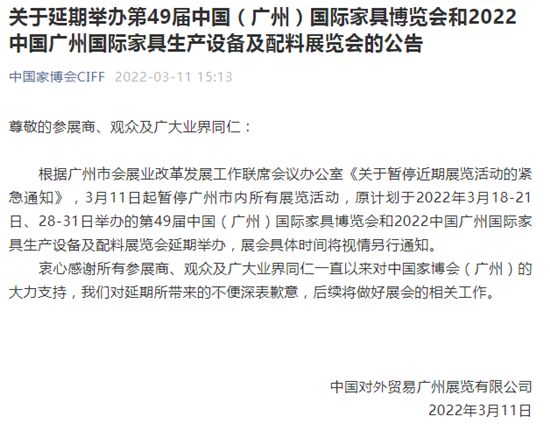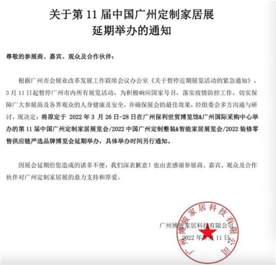 受疫情影响,短短一个星期的时间内,在广州、上海举办的多个家居建材展会宣布延期了,一时间,展会延期通知刷屏了!