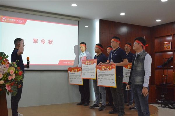全体营销人员整装待发,斗志激昂地签下军令状,铿锵有力地发表宣誓,并承诺必将以最大热情投入工作,完成招商任务!