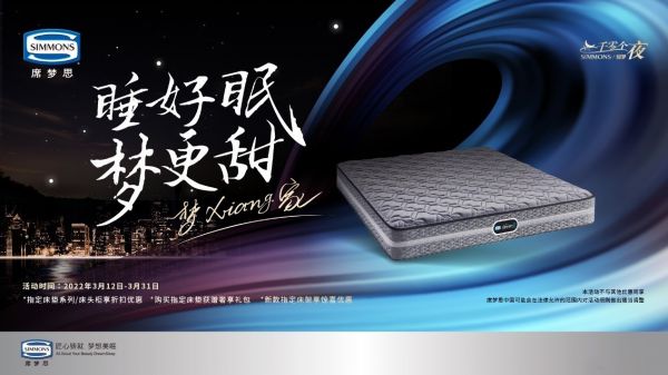 即日起至3月31日,到Simmons席梦思专门店可享受指定产品专属好价、豪礼加赠等活动,承托每一个为梦想而努力的你,以充足的睡眠打下坚实基础。