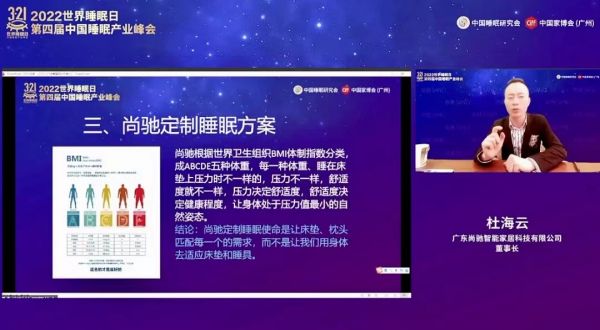 尚驰家居董事长杜海云表示,未来健康睡眠从定制寝具开始,这也是智能健康细分市场中不可或缺的场景和睡眠产业发展的新机遇,尚驰家居专注床垫13年,致力于构建新型智慧健康睡眠体系,旗下主要有尚驰·能量专业睡眠系列,尚驰566°私人床垫定制系列,尚驰·LOVE系列,尚驰·自由空间整体家居系列。其中566°私人床垫定制系列可根据人体的5种体质,6个身体部位睡姿自然度,6个层面的睡眠舒适度,以及BMI科学计算,匹配全国千万用户人体睡眠数据库,为不同体型的人寻找到匹配的床垫。