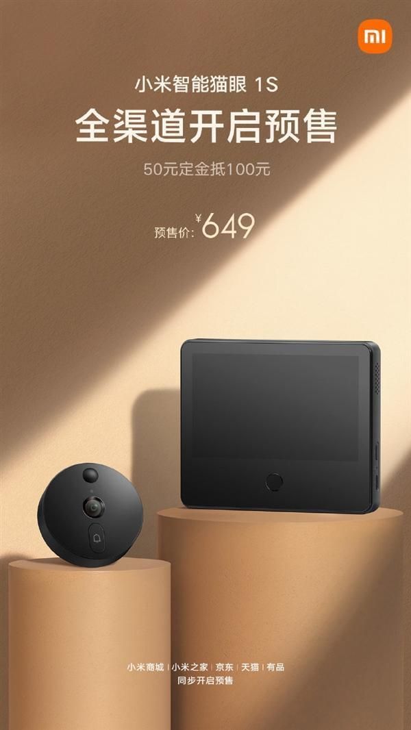 新浪家居智能家居频道讯 3月29日,小米智能猫眼1S发布,5英寸IPS屏+1080P摄像头,支持3-6个月长续航,其预售价699元,首发到手649元。