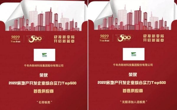喜讯丨房地产开发企业综合实力「首选供应商TOP500」!千年舟凭实力再斩双奖