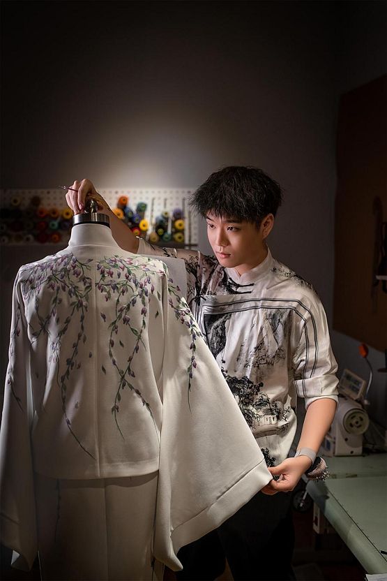 张突然对中式传统纹样具有浓厚的兴趣,为了学习传统技艺,他亲自拜访多位艺术家,学习古典刺绣技巧。而后他创立了三寸盛京与成锦衣局两大品牌,专注用现代时尚的方式传承非遗之美,探索中国风更多的可能性。